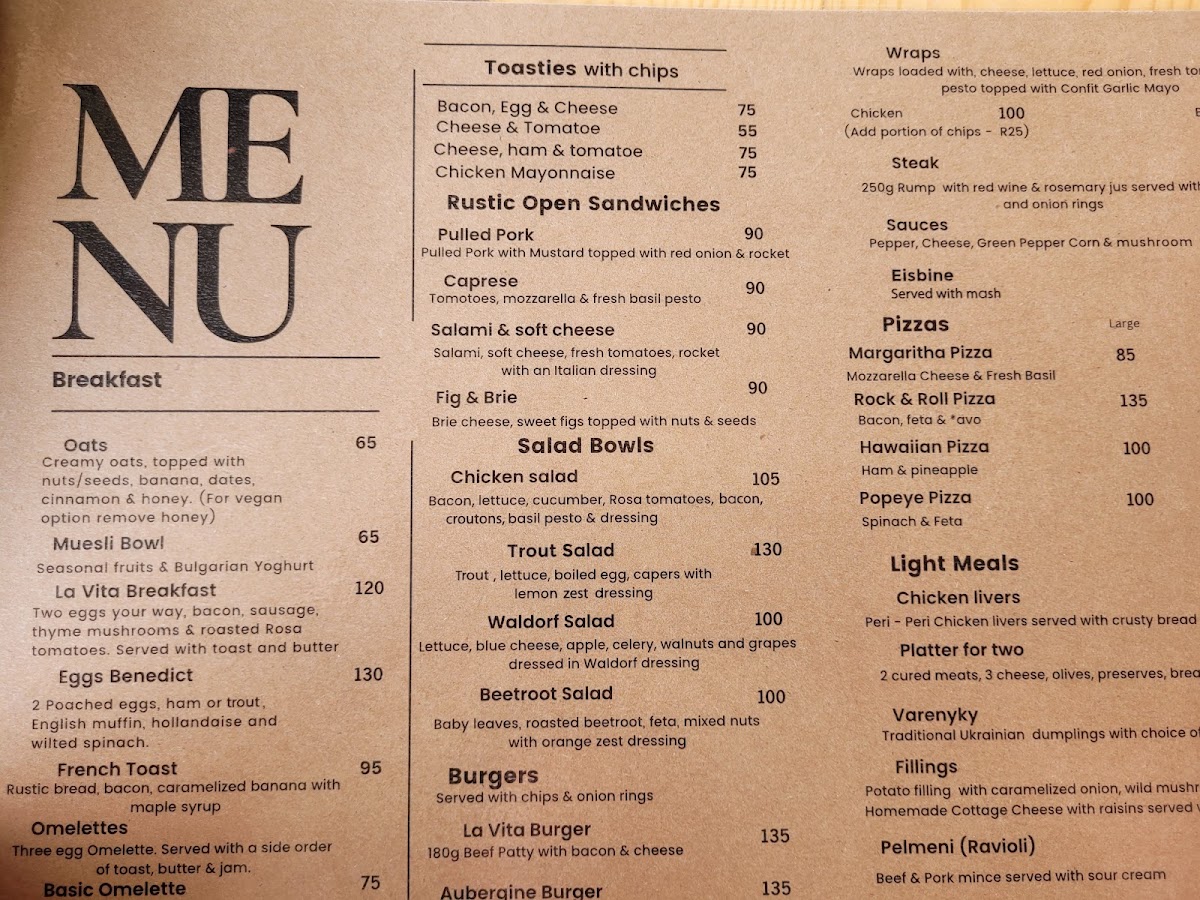 Welcome to Cafe La Vita, a hidden gem nestled in the serene landscapes of Wellington, South Africa. This charming indoor-outdoor café offers a delightful escape with picturesque views, where the gentle presence of grazing horses and Springboks enhances the idyllic ambiance. Renowned for its delectable dishes, the menu includes everything from hearty omelettes to enticing pizzas and burgers, along with local specialties that cater to diverse palates.
